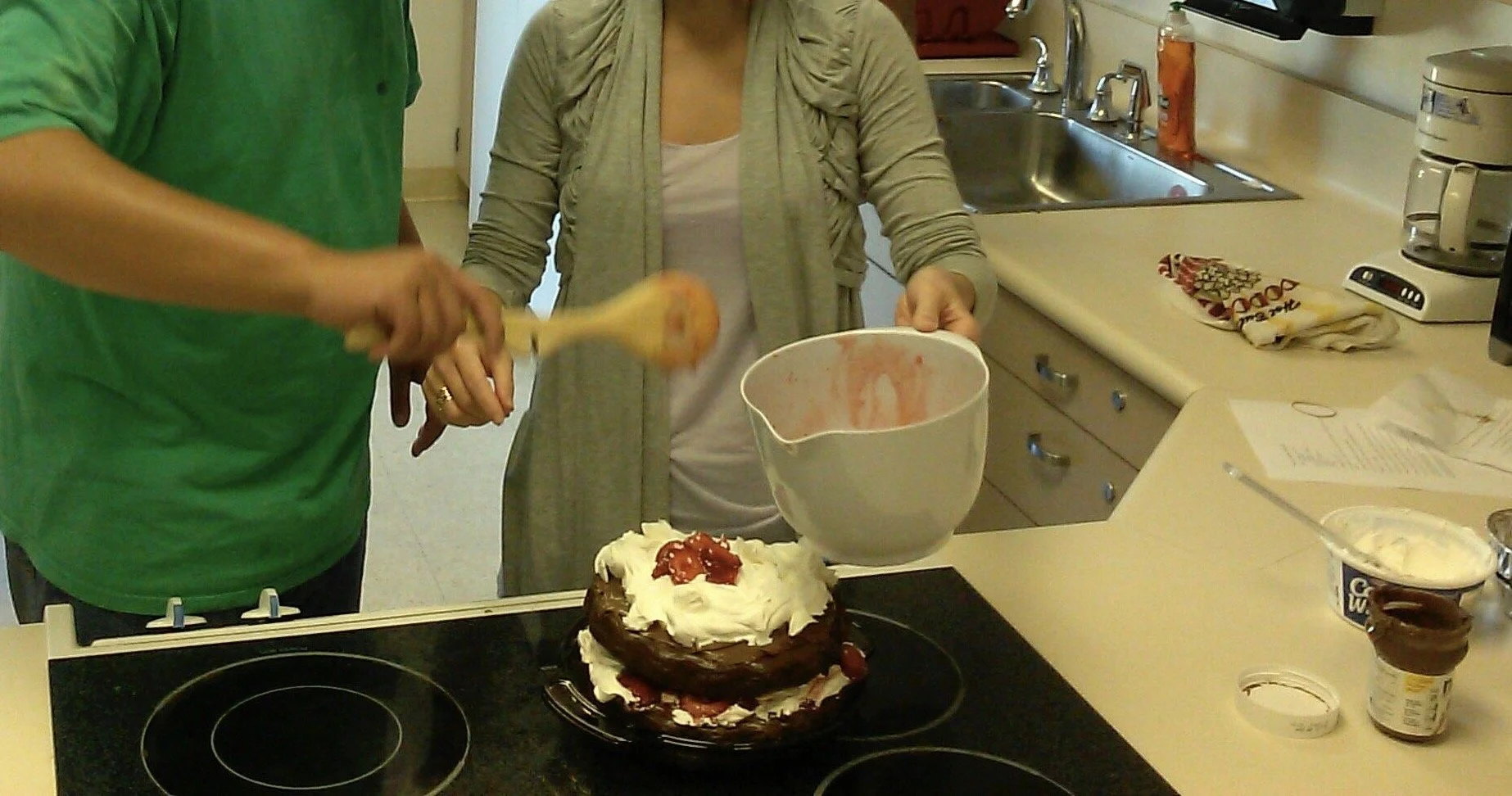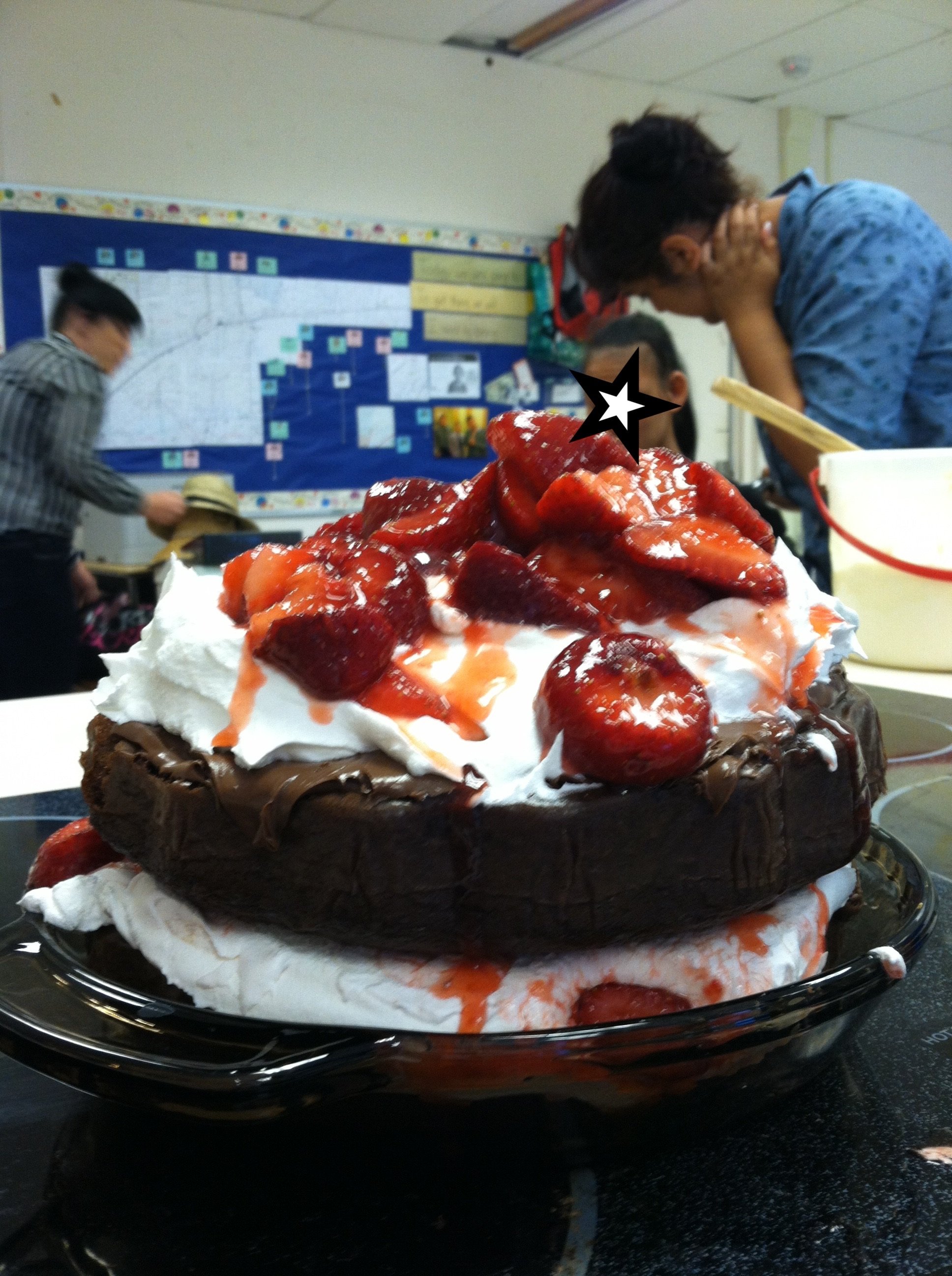 We worked in small groups, we worked in pairs, I even worked with one student solo because he often needed more space to engage in big movements—jumping and flapping were his favorites—when he was feeling dysregulated. But, for this moment, his movements were small and sure. He was so intent on doing his part, on being a member of the community—the cake community—that day. He helped me with the final touch: the ooey gooey strawberries, and he laughed as each sticky strawberry landed on top of the cake.
